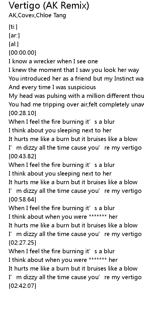 | [00:55.55] | I' m dizzy all the time cause you' re my vertigo |