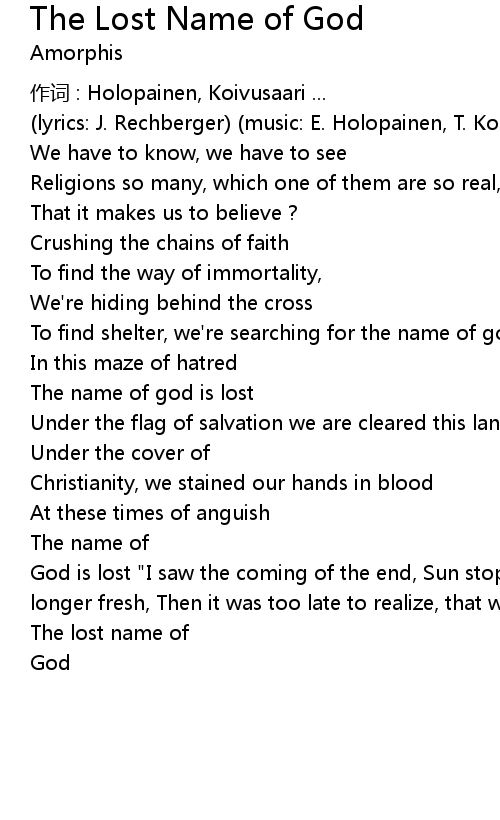 | God is lost " I saw the coming of the end, Sun stopped its shining, Air is no longer fresh, Then it was too late to realize, that we can' t breathe our hate." | |