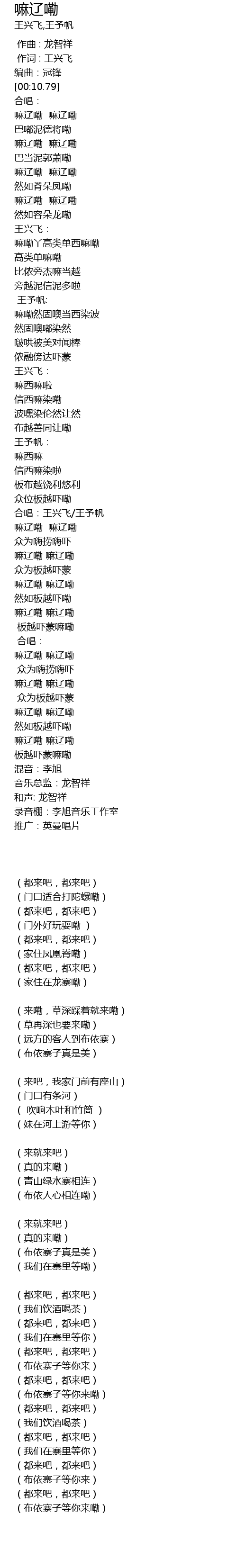 | [02:34.43] | 嘛辽嘞 嘛辽嘞 |