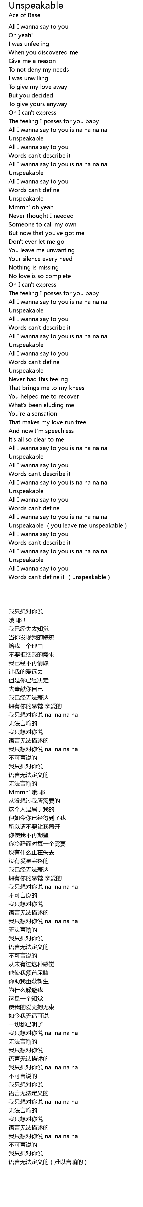 | [02:51.91] | Unspeakable (you leave me unspeakable) |