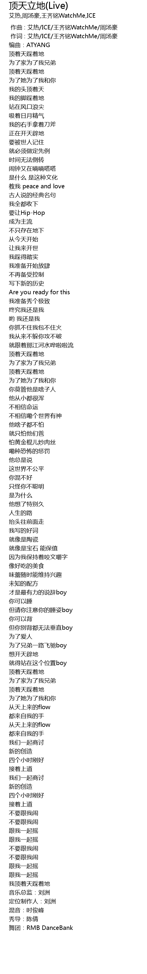| [00:16.91] | dǐng zhe tiān cǎi zháo dì |
