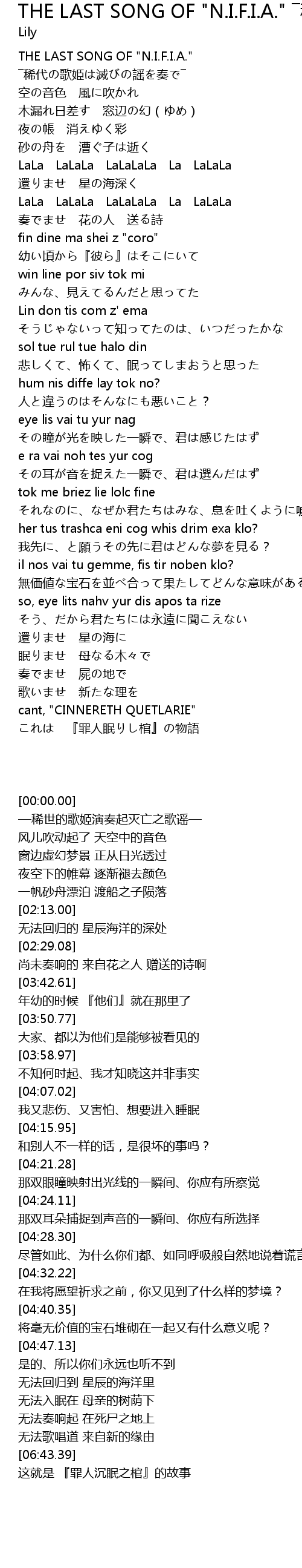 | [00:00.00] | THE LAST SONG OF " N. I. F. I. A." |
