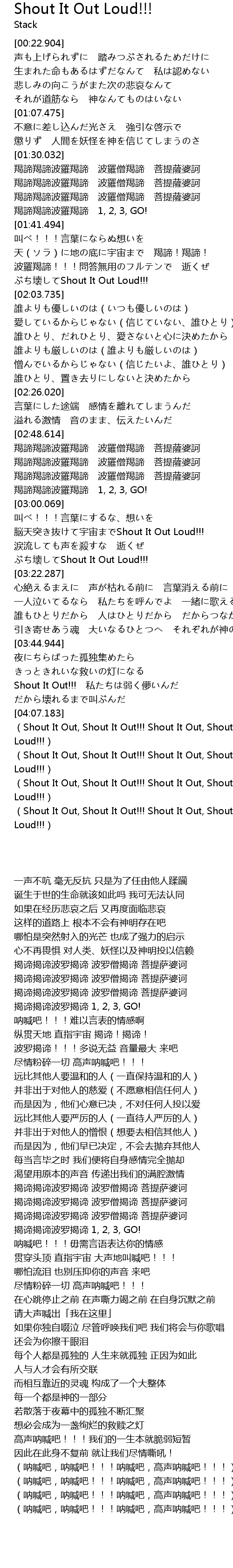 | [04:15.847] | (Shout It Out, Shout It Out!!! Shout It Out, Shout It Out Loud!!!) |