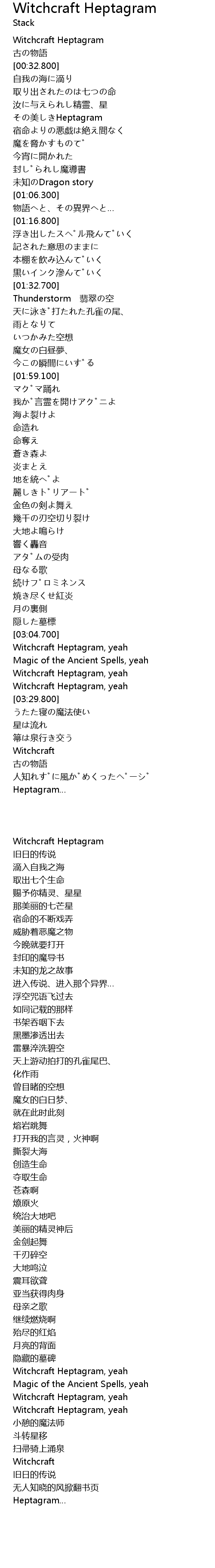 | [03:18.000] | Witchcraft Heptagram, yeah |