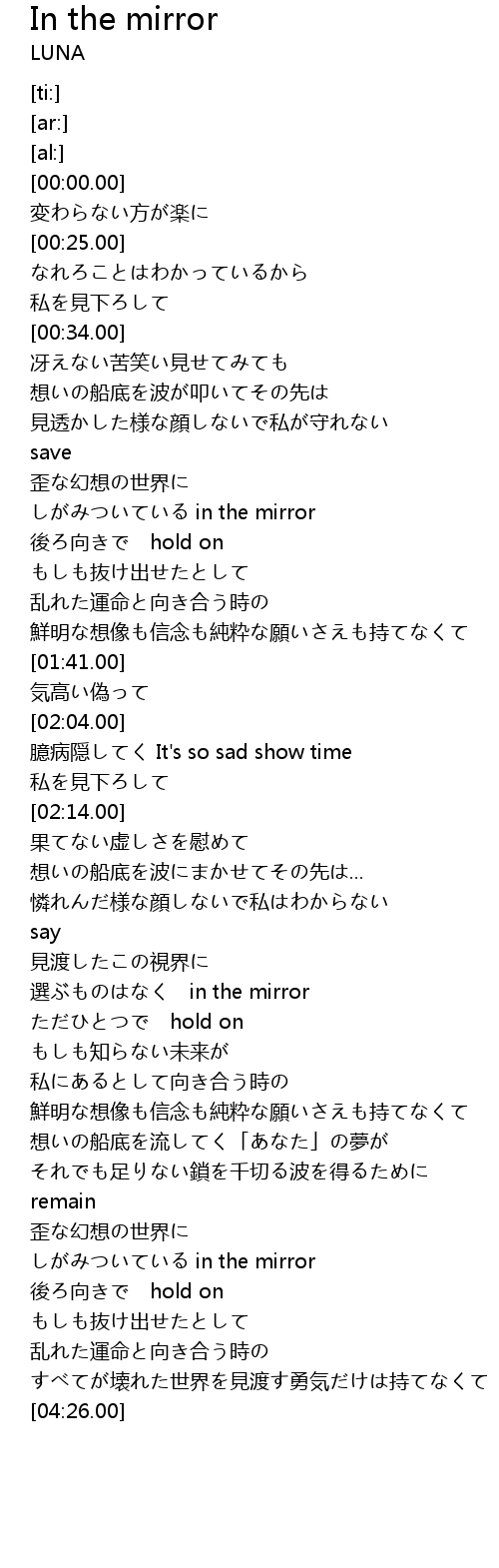 | [02:45.00] | 選ぶものはなく in the mirror |