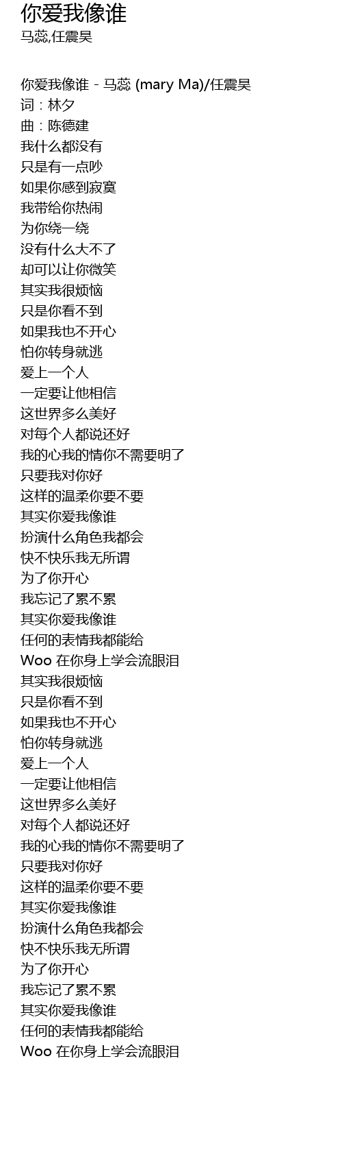 | 你爱我像谁 - 马蕊 (mary Ma)/任震昊 | |