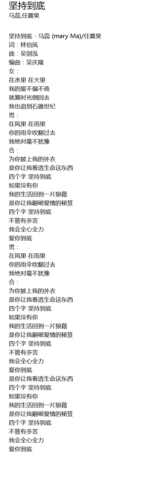 | 坚持到底 - 马蕊 (mary Ma)/任震昊 | |