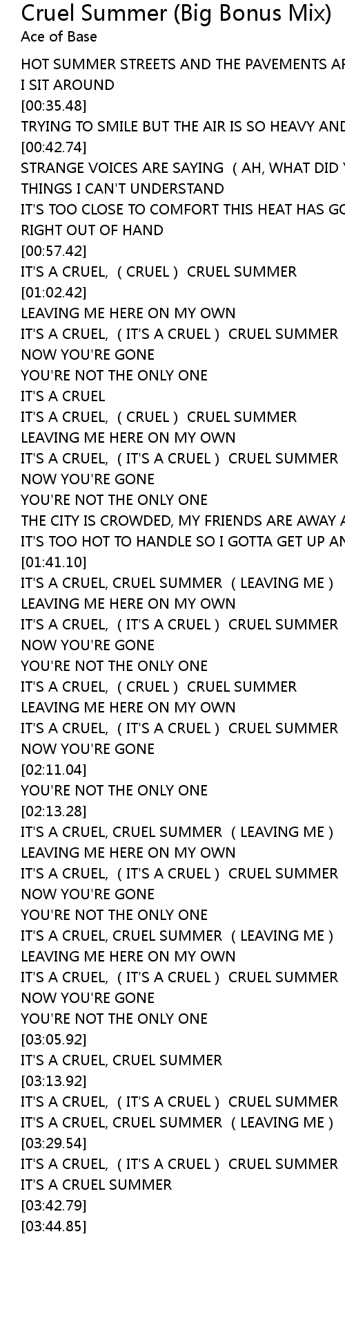 | [01:42.48] | IT'S A CRUEL, CRUEL SUMMER (LEAVING ME) |