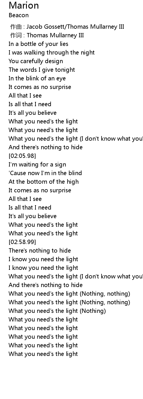 | [03:41.12] | What you need's the light (Nothing, nothing) |