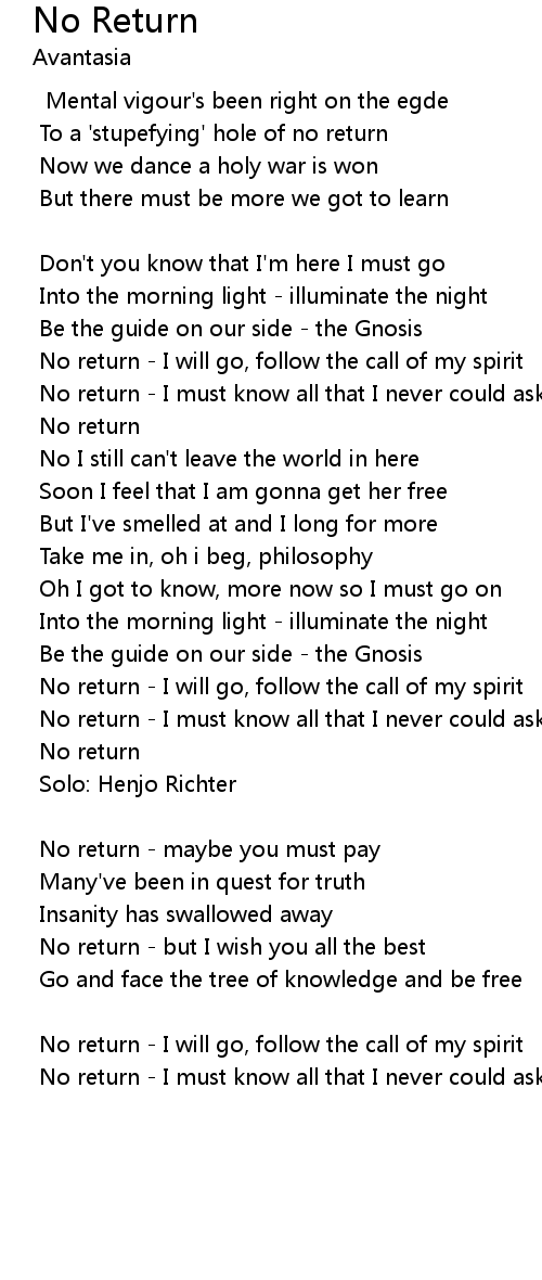 No return - I will go, follow the call of my spirit |
