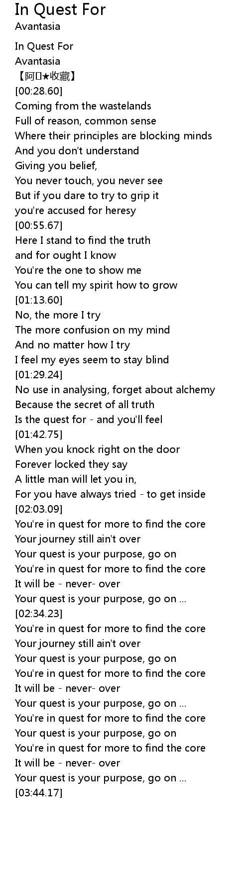 | [02:28.92] | Your quest is your purpose, go on ... |