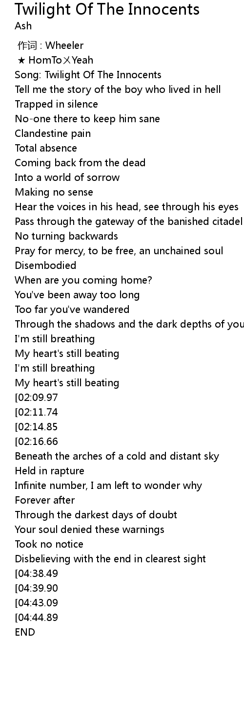 | [00:17.29] | Song: Twilight Of The Innocents |
