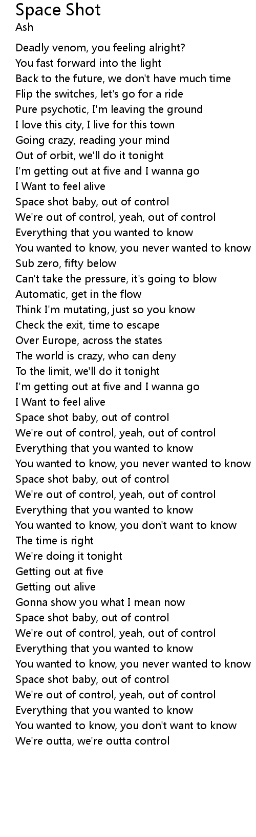 Space shot baby, out of control |