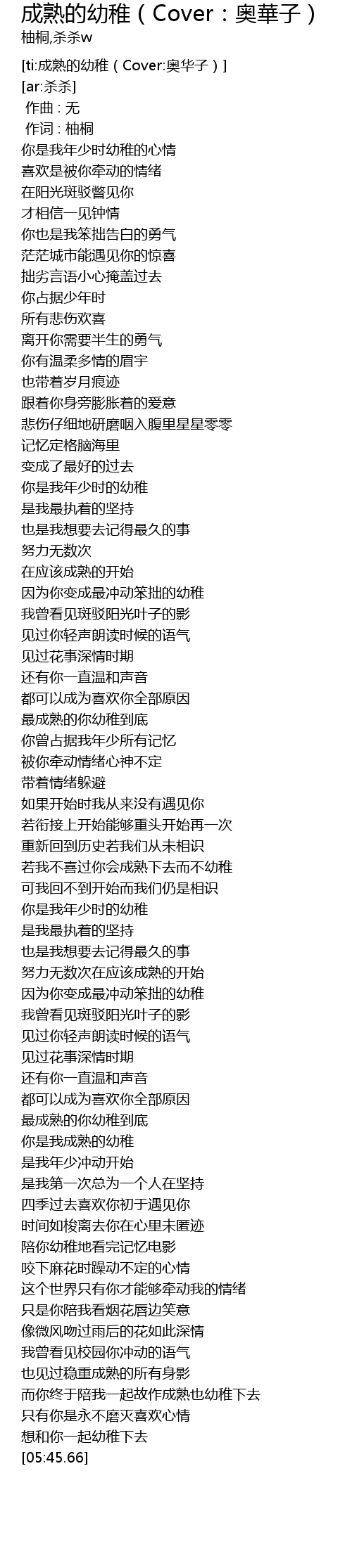 | [ti:成熟的幼稚(Cover:奥华子)] | |