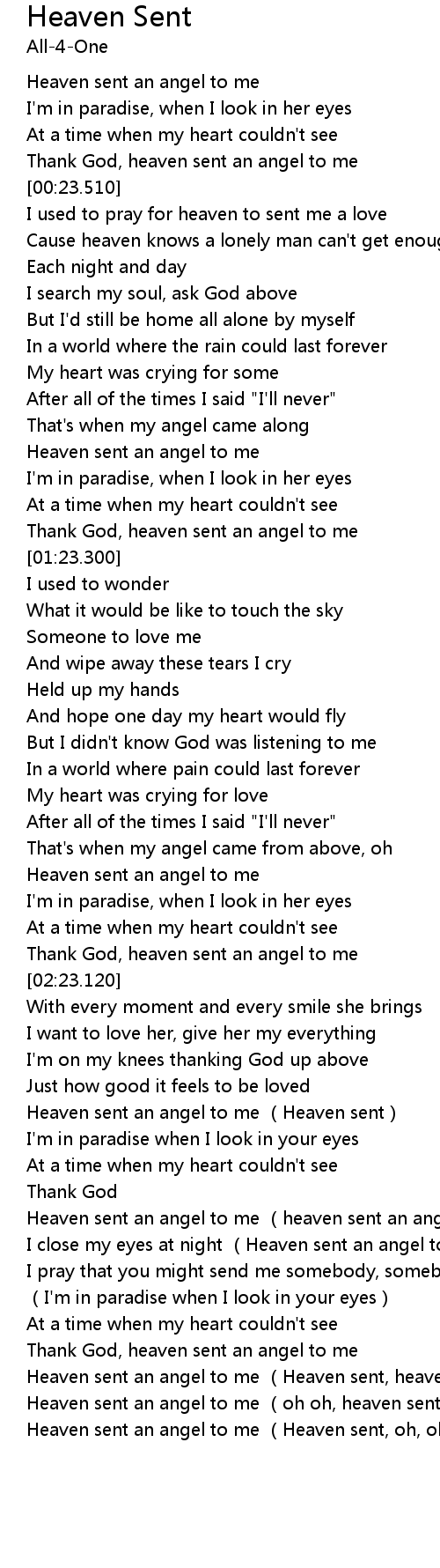 | [02:59.160] | Heaven sent an angel to me heaven sent an angel |