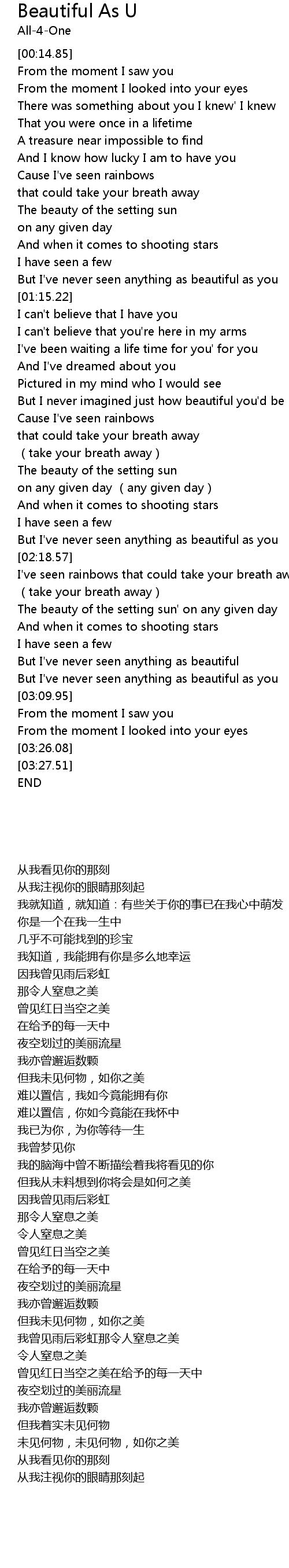 | [01:41.40] | But I never imagined just how beautiful you' d be |