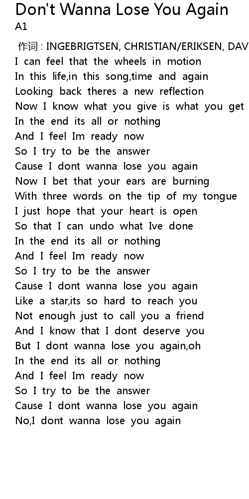 | [02:33.461] | But I dont wanna lose you again, oh |