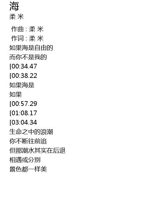 | [03:40.50][00:34.47] | 如果海是自私的 |
