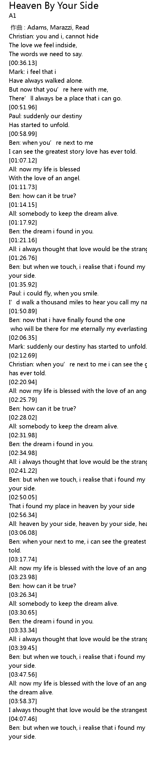 | [02:56.74] | All: heaven by your side, heaven by your side, heaven by your side. |