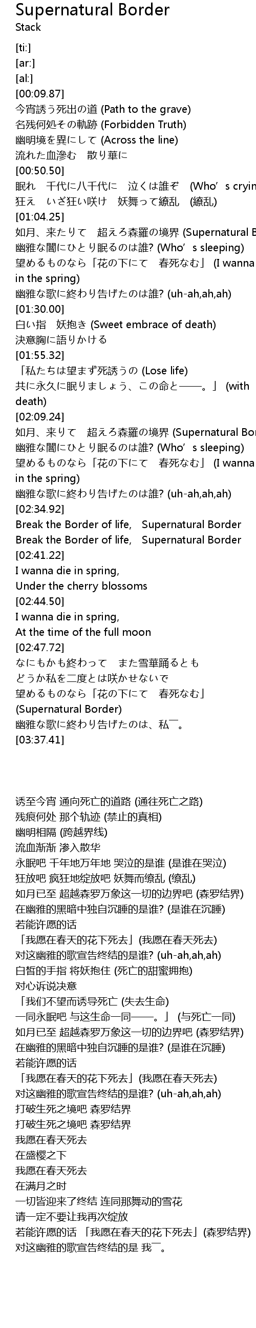 | [02:38.14] | Break the Border of life, Supernatural Border |