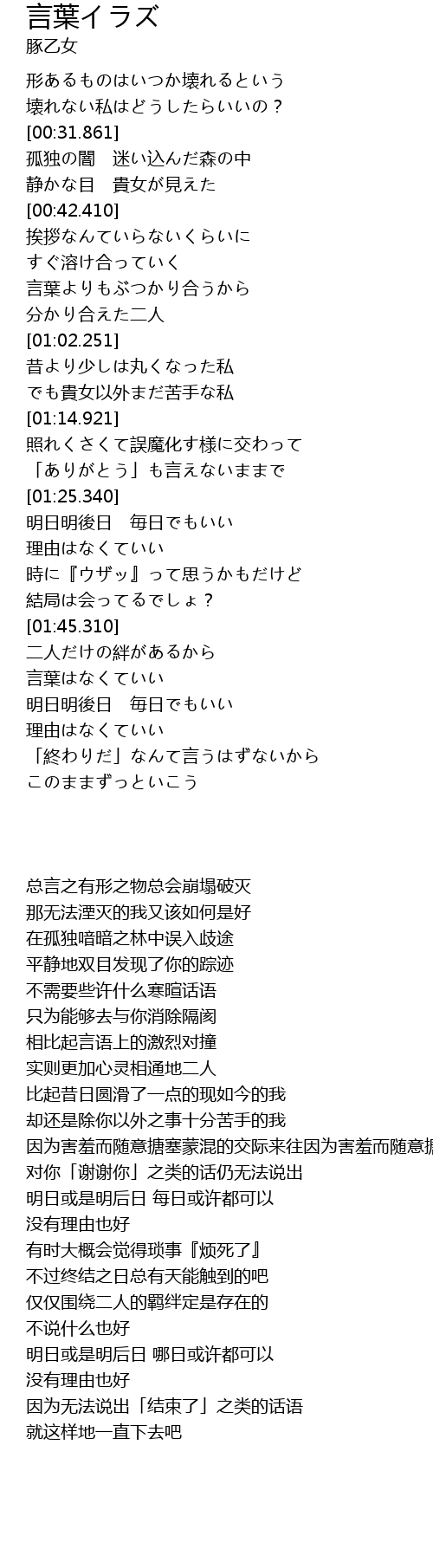 | [00:42.531] | 挨拶なんていらないくらいに |