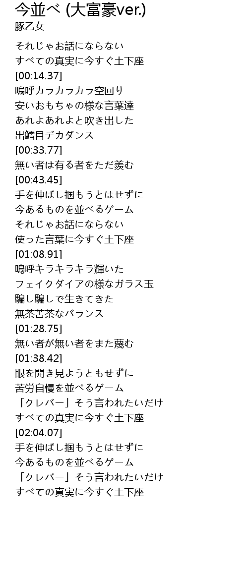 | [01:56.20] | すべての真実に今すぐ土下座 |