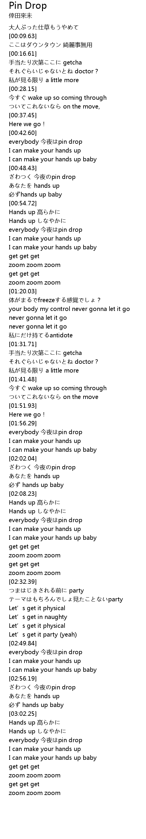 | [03:00.08] | 必ず hands up baby |