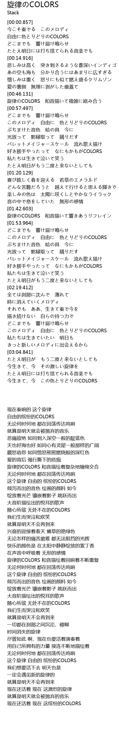 | [03:18.719] | 今生きて、今 この色とりどりのCOLORS |