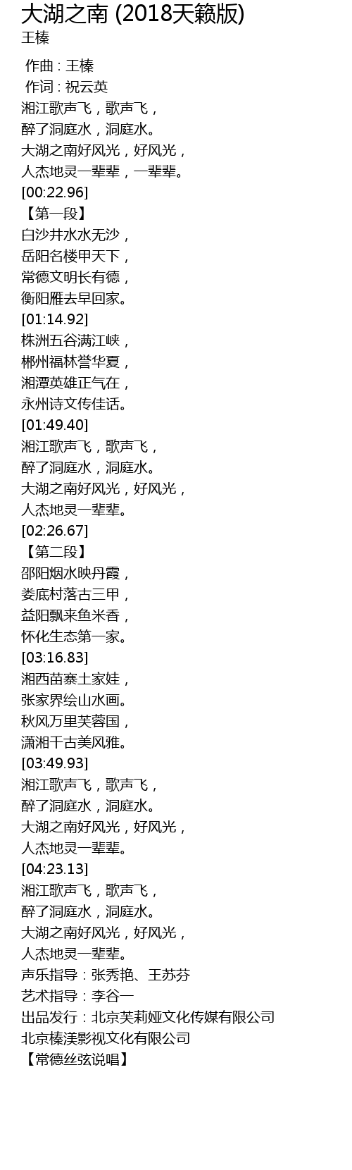 | [04:06.40] | 大湖之南好风光,好风光, |