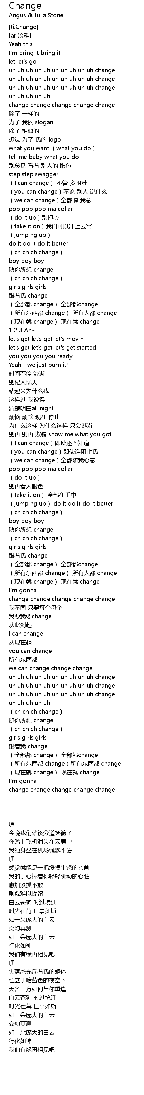 | [01:14.470] | suǒ yǒu dōng xī dōu change suǒ yǒu rén dōu change |
