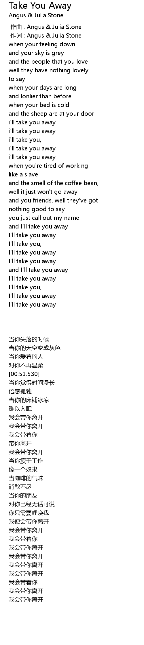 | [00:01.00] | 作词 : Angus & Julia Stone |