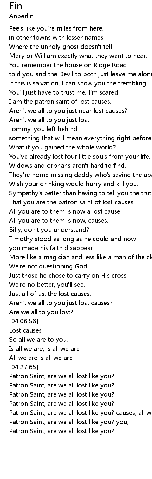 Patron Saint, are we all lost like you? causes, all we are is all we |