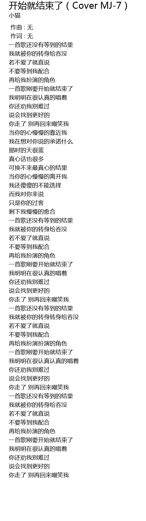 | [00:40.78] | 一首歌刚要开始就结束了 |