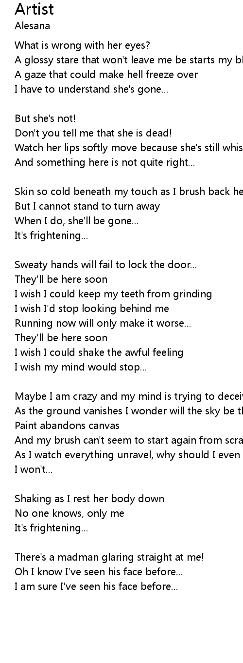 Skin so cold beneath my touch as I brush back her hair and close her eyes |