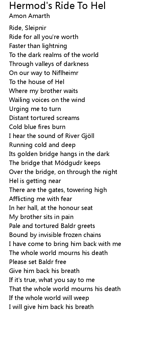 | Song | Hermod's Ride To Hel |