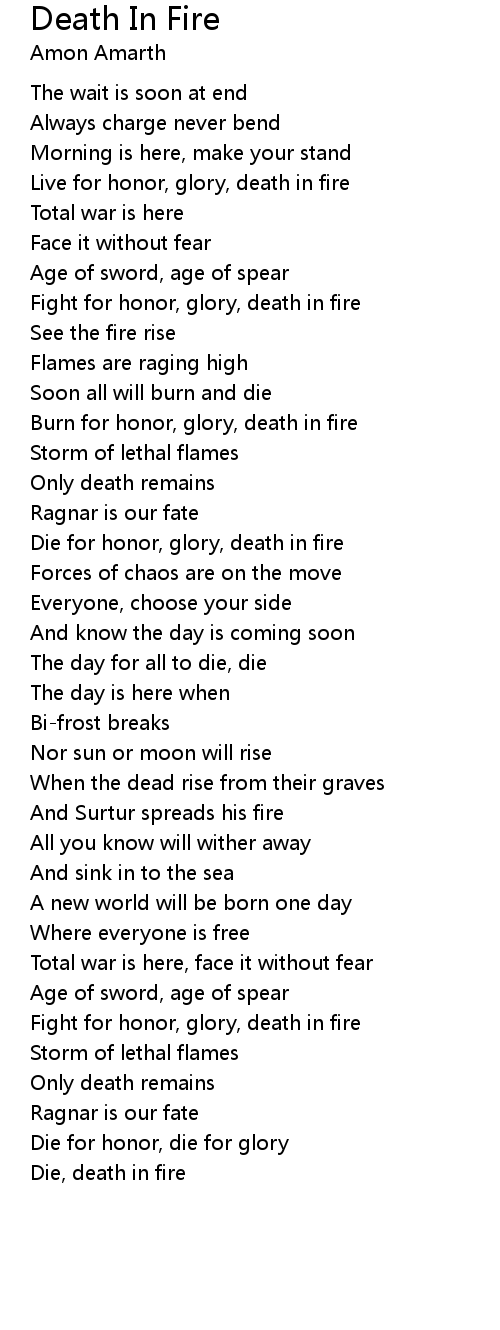 Burn for honor, glory, death in fire |