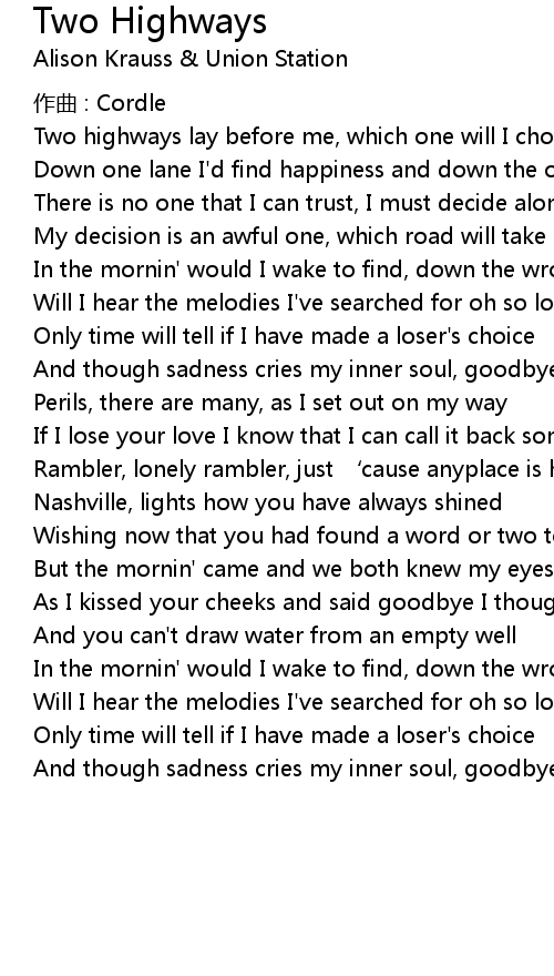 | Song | Two Highways |
