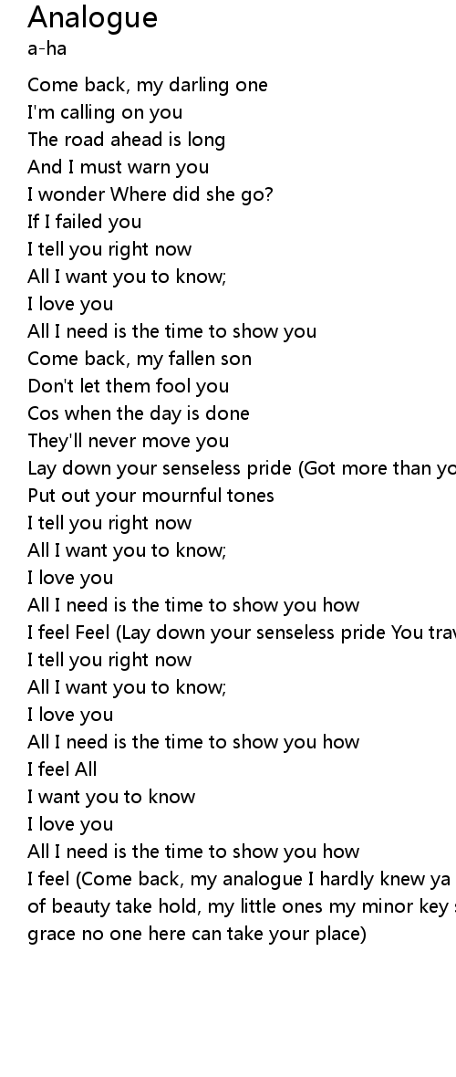 I feel (Come back, my analogue I hardly knew ya the high end sloping off a thing of beauty take hold, my little ones my minor key sonatas show forth your looping grace no one here can take your place) |
