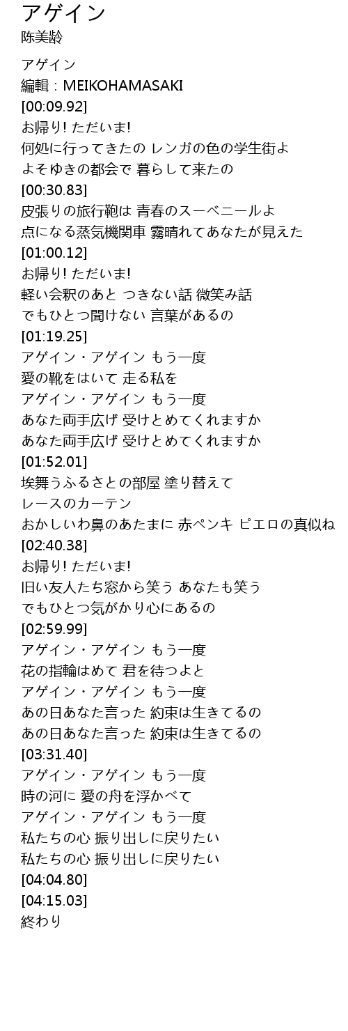 | [03:44.61] | アゲイン・アゲイン もう一度 |