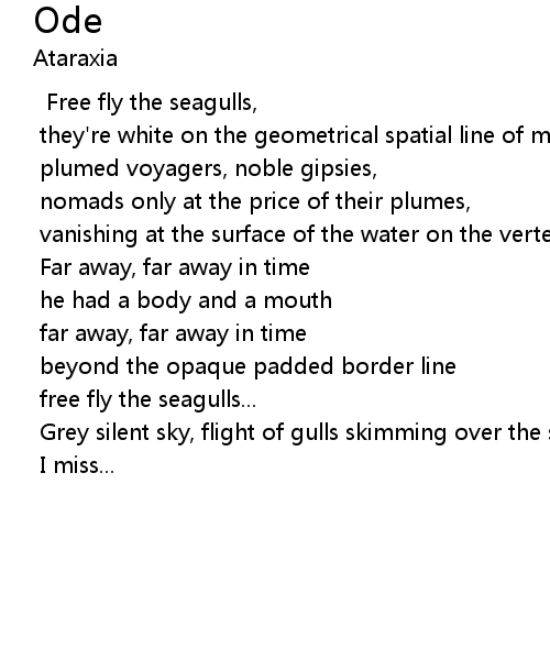 | Grey silent sky, flight of gulls skimming over the sea. | |