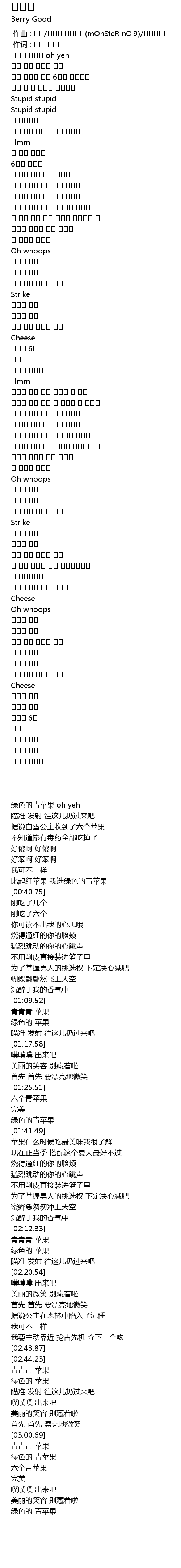 | [00:14.64] | 초록색 풋사과 oh yeh |