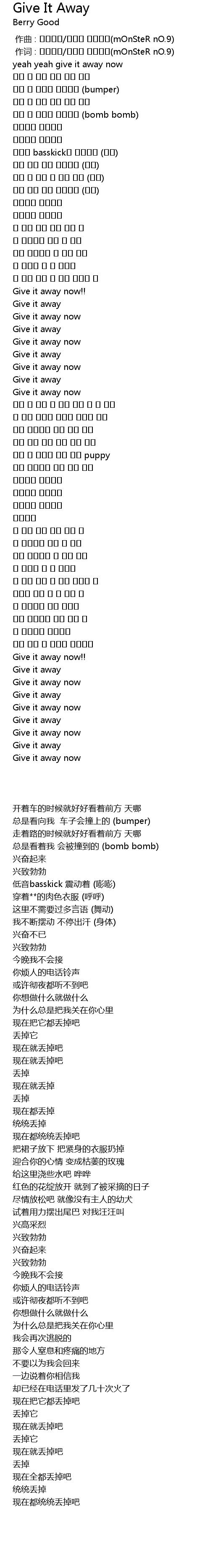| [01:03.000] | Give it away now!! |