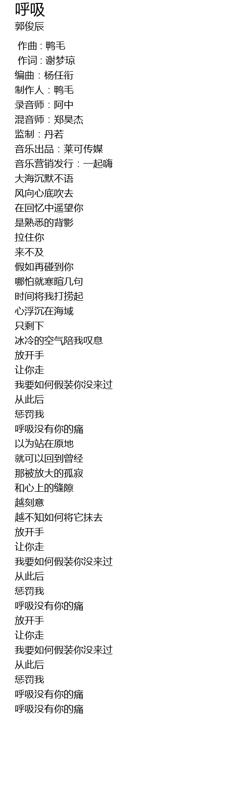| [03:42.40] | hū xī méi yǒu nǐ de tòng |