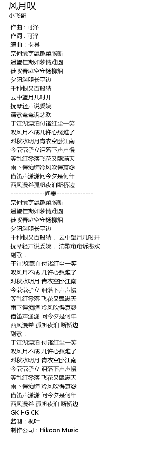 | [02:53.415] | 叹风月不成 几许心愁难了 |