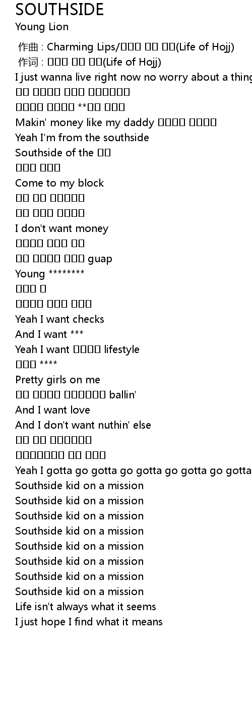 | [01:12.82] | Southside kid on a mission |