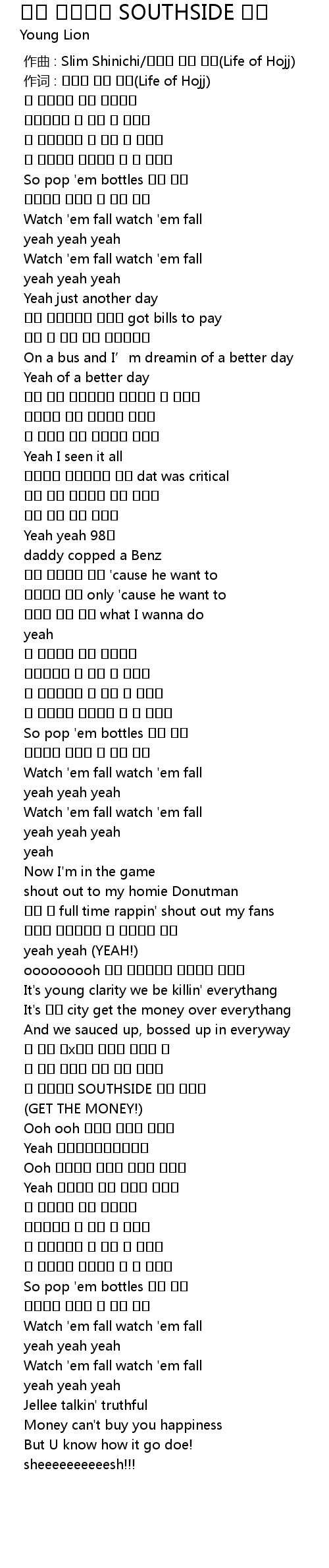 | Song | 이런 물질적인 SOUTHSIDE 녀석 |