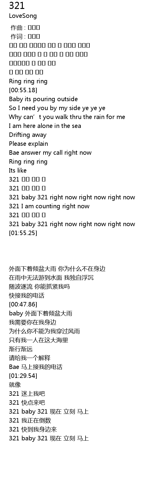 | [01:48.56] | 321 baby 321 right now right now right now |