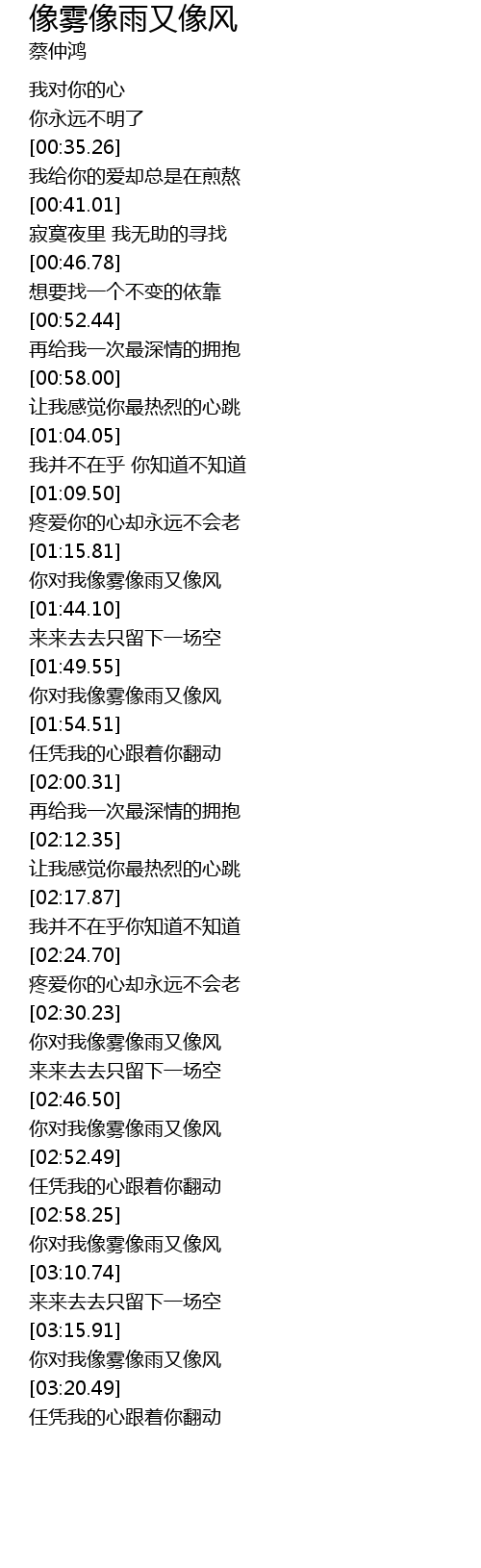 | [02:37.31] | 你对我像雾像雨又像风 |