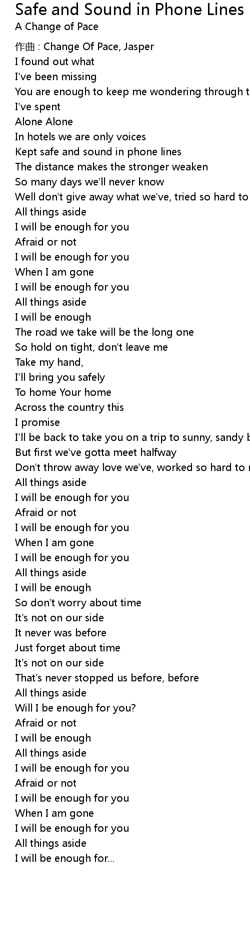 | Song | Safe and Sound in Phone Lines |