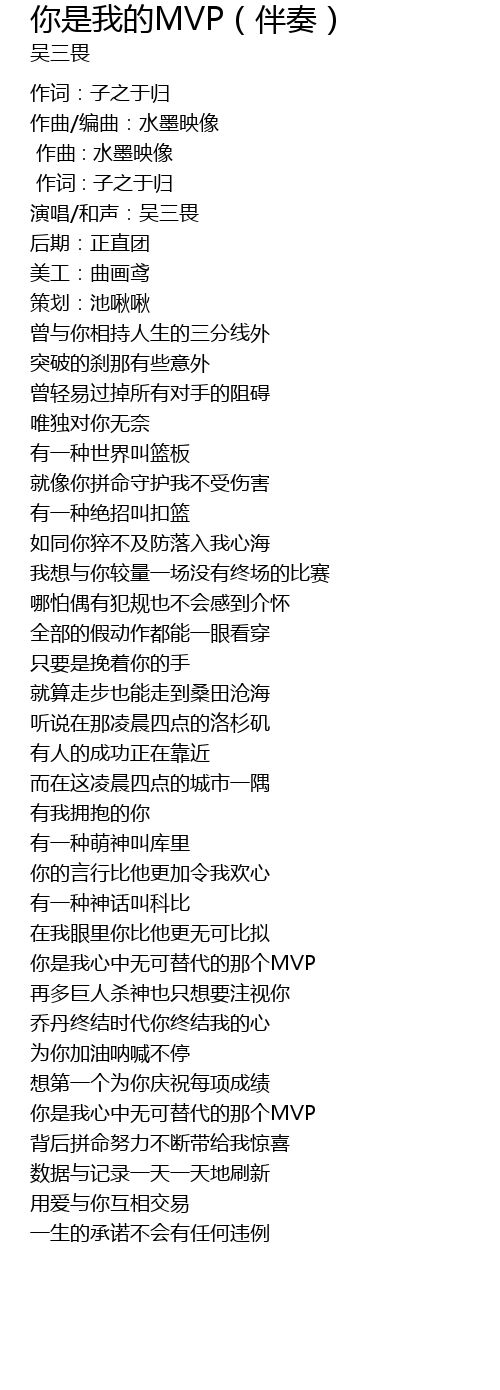 | [02:58.41] | 你是我心中无可替代的那个MVP |